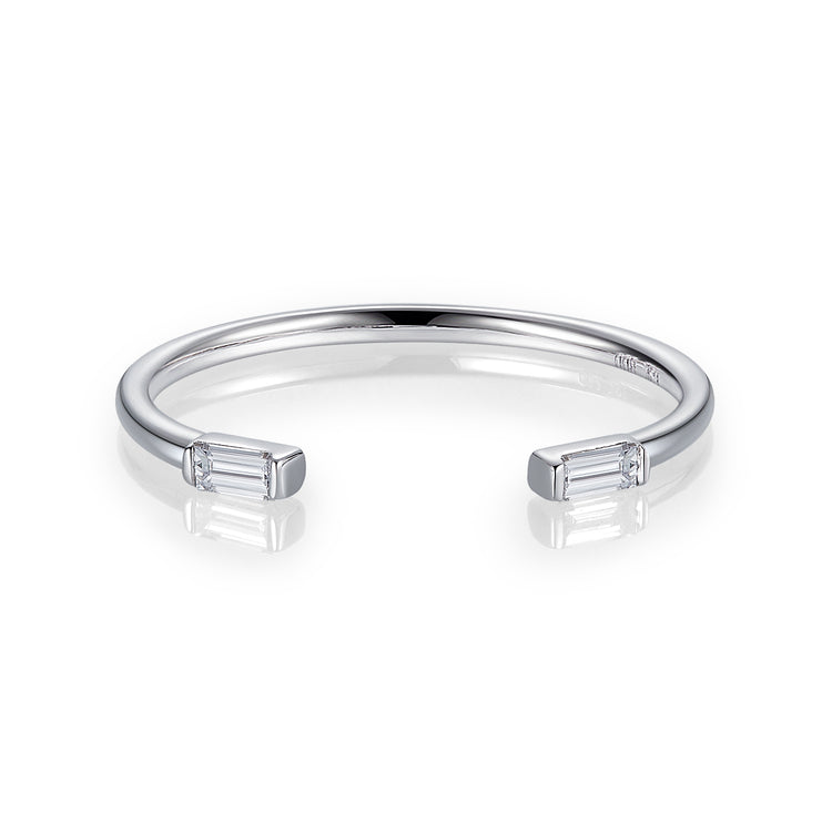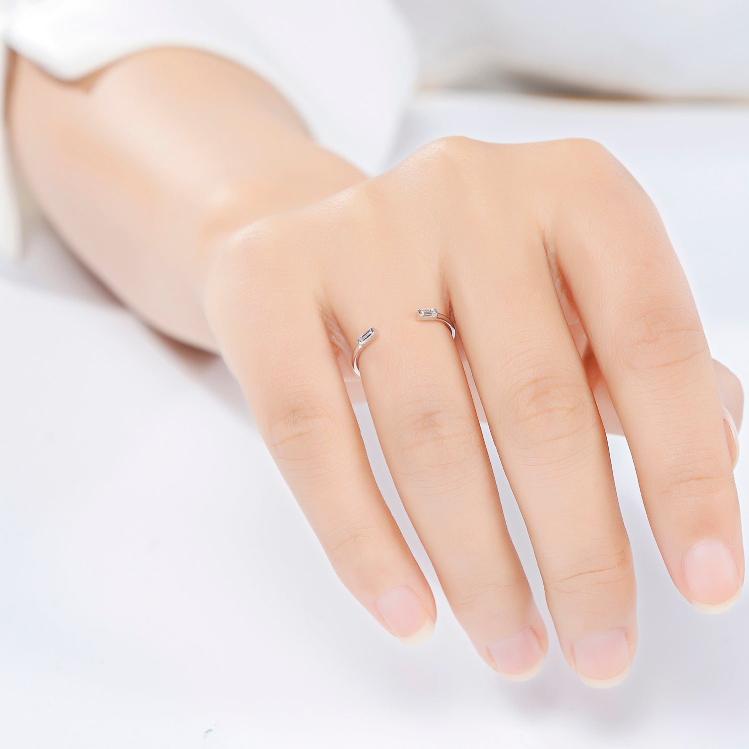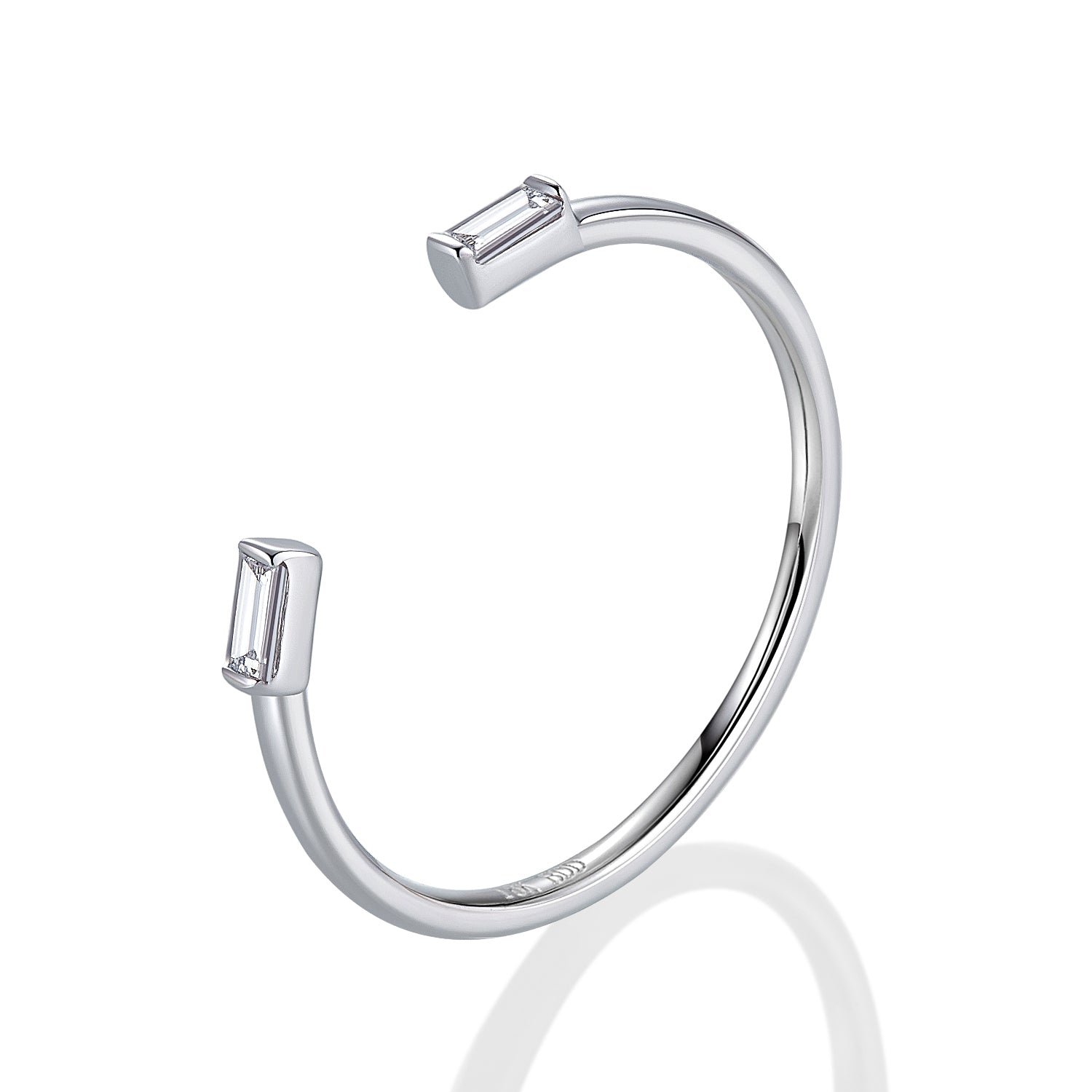 Crafted in 14K gold and set with natural diamonds, this band features a sleek center baguette flanked by round diamonds for a refined three-stone look. Its clean and modern design makes it perfect for stacking, wearing as a minimalist wedding band, or gifting as a symbolic anniversary ring.