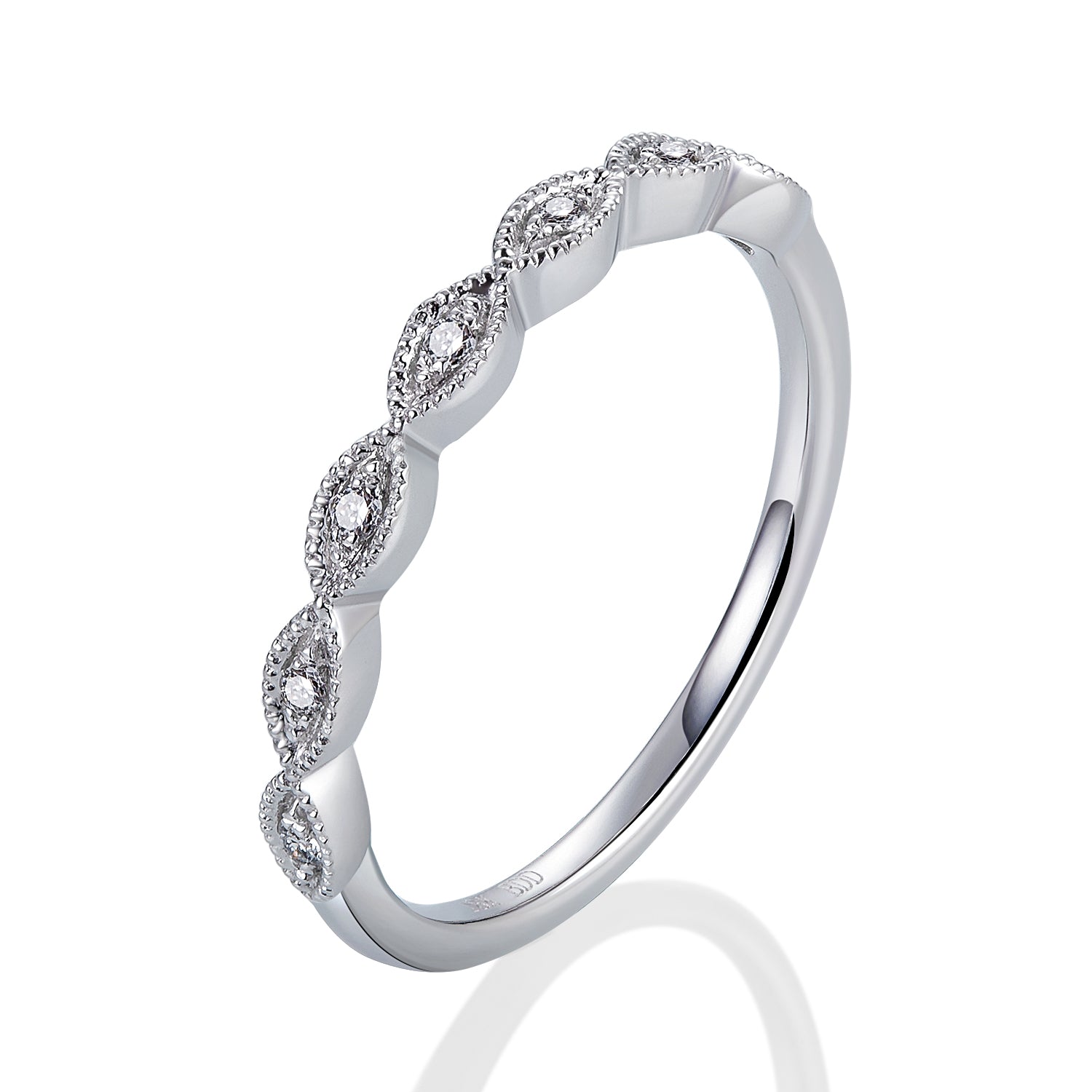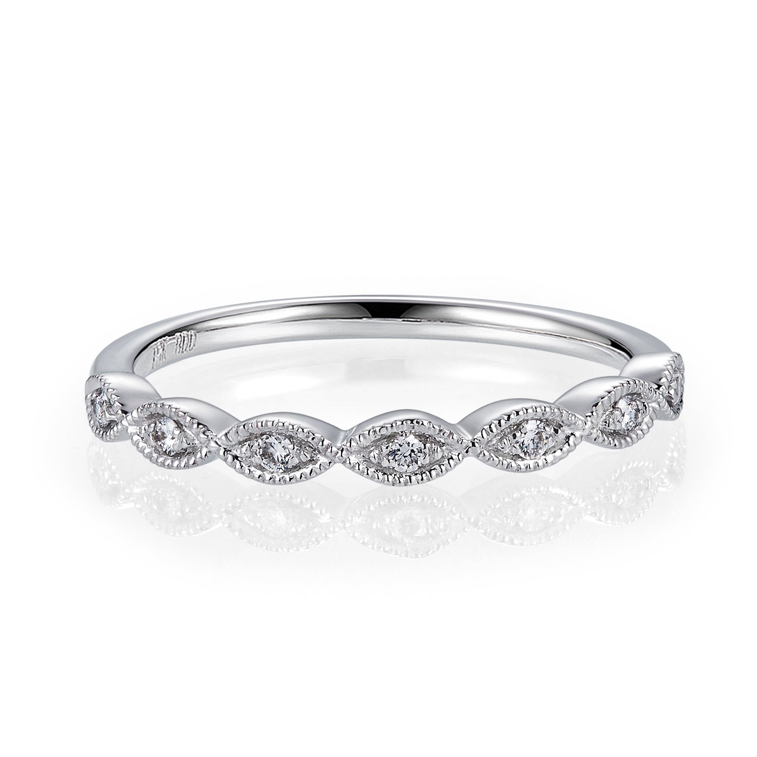 Crafted in 14K gold and set with natural diamonds, this band features a continuous row of marquee-shaped frames accented with fine milgrain detail. The alternating diamond pattern adds brilliance and vintage charm, making it a perfect choice for stacking, pairing with an engagement ring, or wearing as a timeless anniversary band.