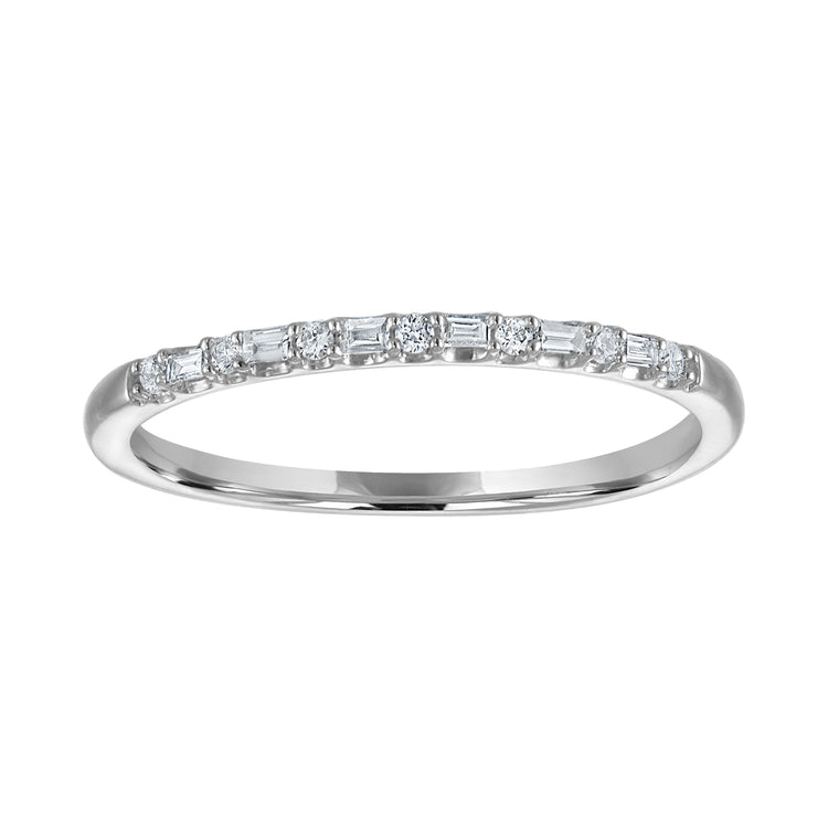 Crafted in 14K yellow gold, this band features a stunning combination of round and baguette diamonds set in a sleek row across the top. The alternating shapes create a refined yet modern sparkle, making it perfect as a wedding band, a stackable piece, or a timeless everyday ring.